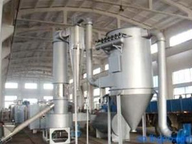 流化床干燥機(jī)是由物料自進(jìn)料進(jìn)口進(jìn)入機(jī)內(nèi),在振動力作用下,物料沿水平面流化床拋擲,向前連續(xù)運(yùn)動,熱風(fēng)向上穿過流化床同濕物料換熱后,濕空氣經(jīng)旋風(fēng)